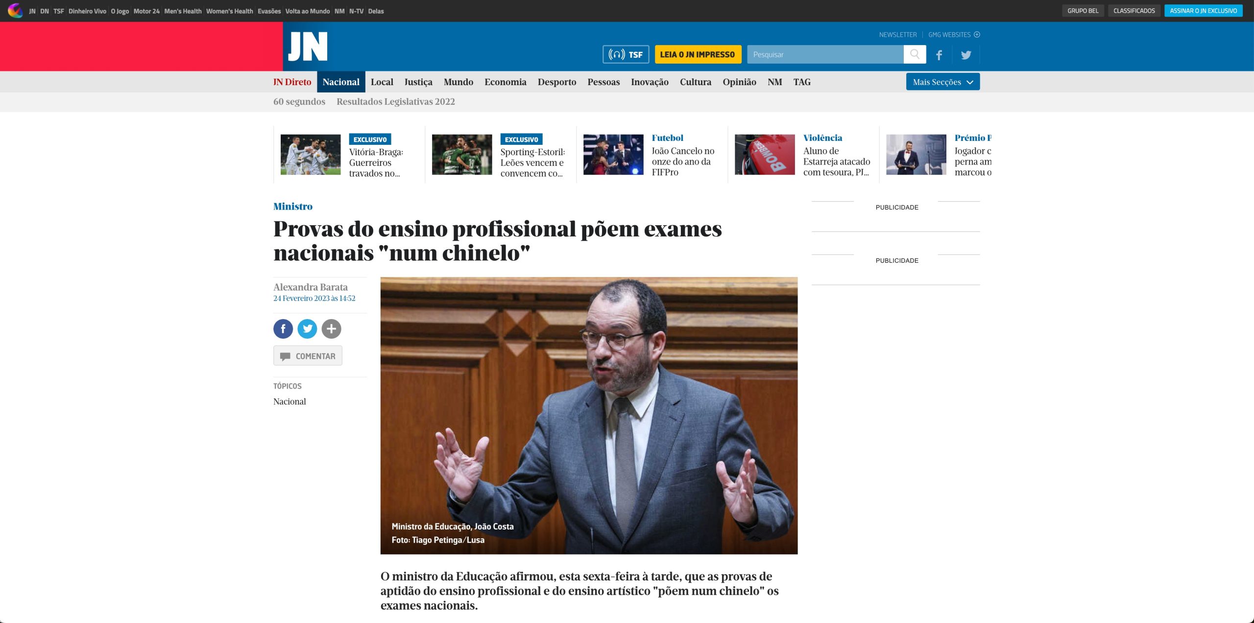 “Chegamos a junho e o país anda obcecado com os exames nacionais, quando estão a acontecer as provas de aptidão profissional e as provas de aptidão artística, que, em muitos casos, põem no chinelo um exame que é feito em hora e meia, em termos de complexidade e em termos de esforço.”